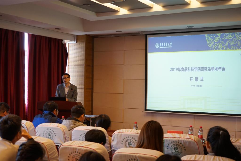 核心提示:11月13日上午,我院在食科楼504举行2019年研究生学术年会开幕式,由食科院副院长刘石林教授为开幕式致辞;Massachusetts大学的肖航教授和Aalto大学的Orlando Rojas教授进行学术汇报。