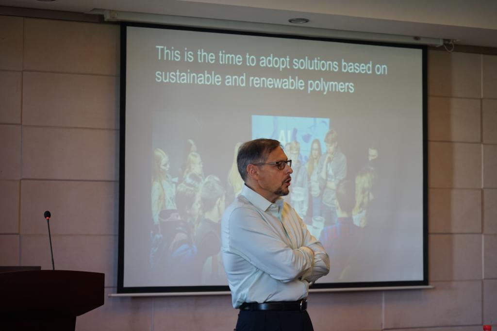 接下来,特邀专家Orlando Rojas教授做了主题为“Assembly of nano-poly -saccharides and plant polyaromatics at interfaces”的学术报告。Orlando Rojas教授从纳米多糖、木质素和单宁酸等物质入手,介绍了多相体系(包括乳液和泡沫)的制备方面的研究。他指出可以根据不同的物质的形态发生、界面活性以及在水悬浮液中的网络和自组装能力,特别是适用于纳米纤维素和纳米几丁质的能力,对新兴的纳米和微观结构材料进行选择。Orlando Rojas教授边讲边提出问题,报告结束后又与师生进行讨论交流。