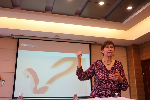报告结束后,我院师生积极向Carrie Regenstein 女士探讨了在做陈述汇报时会遇到的诸多问题,Carrie Regenstein 女士热心地帮助几位同学解答了困惑。