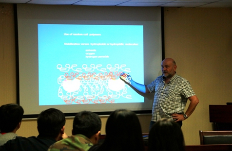 Roberto 教授首先简要概述了通过使用酶固定化的方法来解决酶限制的问题,他讲到,固定化酶过程中应注意生物催化剂的机械阻力、固定方案的简单性、酶联免疫和酶纯化的可能性、固定对酶活性的影响以及酶的稳定性和调节酶选择性或特异性等几个方面的问题。 Roberto教授着重介绍了酶的稳定性的影响,包括防止分子间相互作用、酶结构的硬化、预防酶亚基解离、酶周围人工环境的产生、酶的再激活等问题。