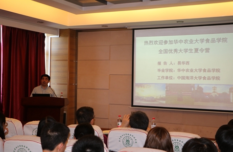(食科院通讯员 张璟 邵晋辉)7月21日上午,食科院优秀校友周景文、易华西两位教授回到母校并做客食科院教授名师报告会,分别带来题为“合成生物学技术生产黄酮类化合物”与“特质乳酸菌选育及其活性代谢产物的研究与开发”的报告。食科院徐晓云副院长、陈福生教授、熊善柏教授等多名教师出席了此次报告会,百余名研究生及2017年暑期夏令营的营员们聆听了此次报告。