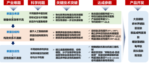 侯焘副教授主持的“新质蛋白生物活性肽配料高效制备关键技术与应用”项目,围绕“新质蛋白质资源挖掘与高值化利用”,针对“复杂生物基质下多肽制备体系效率不高、新型生物活性肽构效关系不清晰、新质蛋白肽生物活性发挥机制不清楚”等限制产业发展的关键问题,以生物活性肽制备化学和营养学理论研究为切入点,以关键技术研发和产品开发为突破点,以动物源、植物源、微生物源新质蛋白为研究对象,开发了有机硒肽、芸豆肽、地龙肽、金钱龟肽和田头菇肽等功能性配料,取得了显著的经济效益,实现了新质生物活性肽产业从“技术验证”迈向“规模应用”的“1→10”的突破,为践行“大食物观”提供了关键技术支撑与产业化示范。