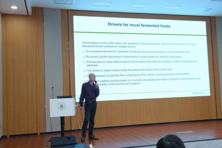 6月5日下午,Michael Ganzle教授在英国365上市集团、果蔬加工与品质调控省重点实验室的邀请下于英国365上市集团103会议室进行关于食品创新发酵的学术报告。Michael Ganzle,加拿大阿尔伯塔大学教授,加拿大食品微生物与益生菌研究主席(Tier1),加拿大皇家科学院院士,国际权威的食品微生物和益生菌专家。Michael Ganzle教授长期致力于乳酸菌的功能特性与新型非热食品保藏方法研究,以开发新型食品发酵剂、保护剂、益生菌等。