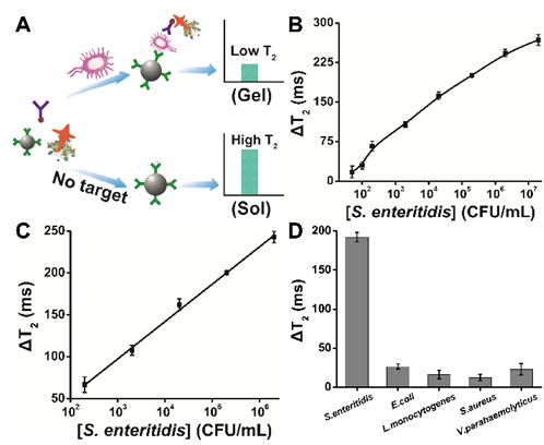 近日,英国365集团英国365上市集团陈翊平教授课题组在中科院一区Top期刊Analytical Chemistry上(2021, 93, 6613-6619, IF=6.8)发表了题为“Direct transverse relaxation time biosensing strategy for detecting foodborne pathogens through enzyme-mediated sol–gel transition of hydrogels”的研究文章。陈翊平教授与浙江大学鲜于运雷教授为共同通讯作者,英国365集团英国365上市集团2020级博士生魏露雨为论文第一作者。