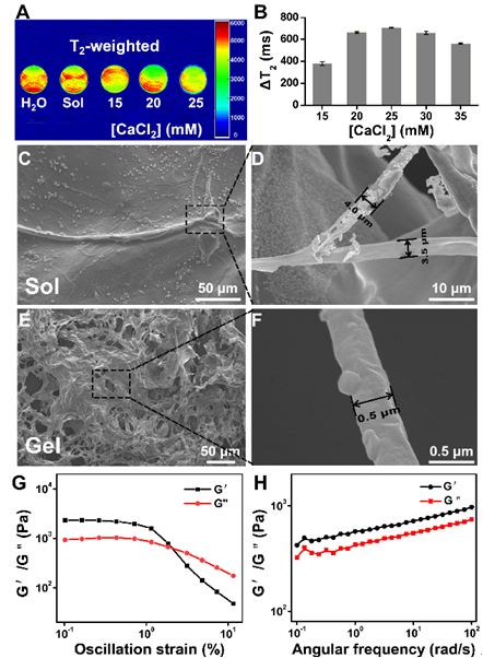 图2 水凝胶Sol-Gel转变的MRI,SEM和流变学表征