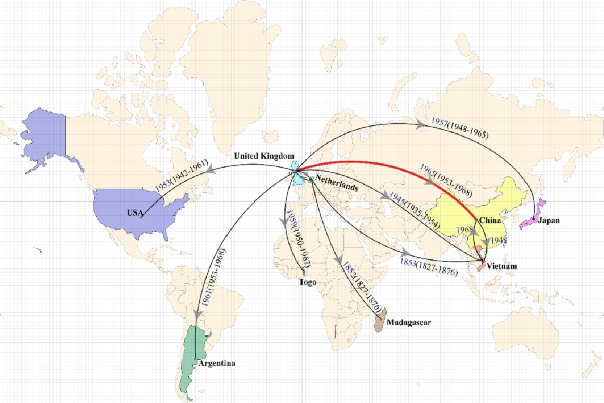 图3 生物地理学推断HAC组菌株全球可能的传播路径