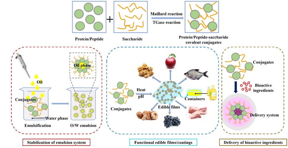 图5 蛋白质/多肽-糖类共价化合物在食品工业中的应用