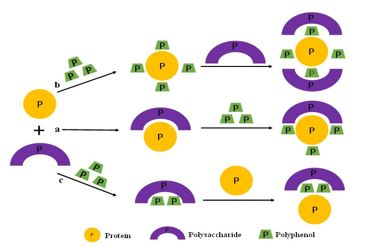图3 蛋白质、多糖和多酚相互作用的可能机制
