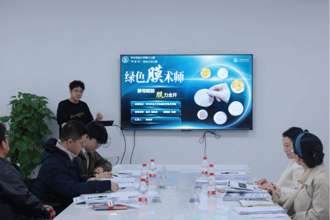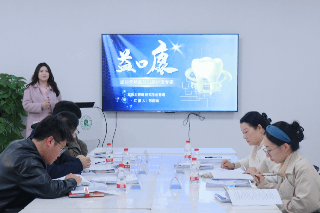 答辩现场,各团队各展所长、亮点纷呈。“绿色‘膜’术师——酵母赋能‘膜’力全开”团队聚焦啤酒行业资源浪费问题,依托酵母赋能技术提取废料中的活性成分,将其转化为功能性护肤品原料,实现低价值废物的高值化利用,兼具环保、产业与经济价值,具备良好的落地前景。“血脂将——纳米尖兵,横扫血脂乱军”团队紧扣健康中国与绿色转型发展要求,以纳米生物酶解技术为核心,将虾蟹壳水产副产物转化为高纯度纳米几丁质,研发的固体营养粉剂可实现调脂、整肠、抗炎三重功效,在健康管理与资源循环利用领域展现出显著的创新价值。其余参赛团队亦各有突破,或聚焦口腔护理、助眠养生、肠道微生态等健康领域研发特色功能性产品,或探索可食用包装、农产品可视化平台、电商赋能乡村振兴等新路径新形式,兼顾技术创新、生态环保与社会价值,让整场答辩充满科创活力。