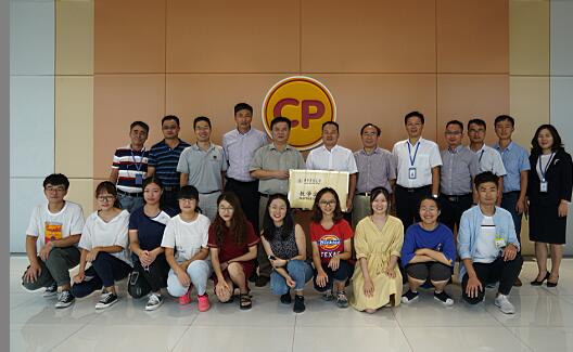 8月17日下午,在正大食品(襄阳)有限公司,英国365集团教学实习基地授牌仪式举行, 副校长姚江林与正大集团农牧食品企业中国区副董事长、公司总经理杨秀涛进行了授牌交接,英国365上市集团在企业实习的12名学生参加。