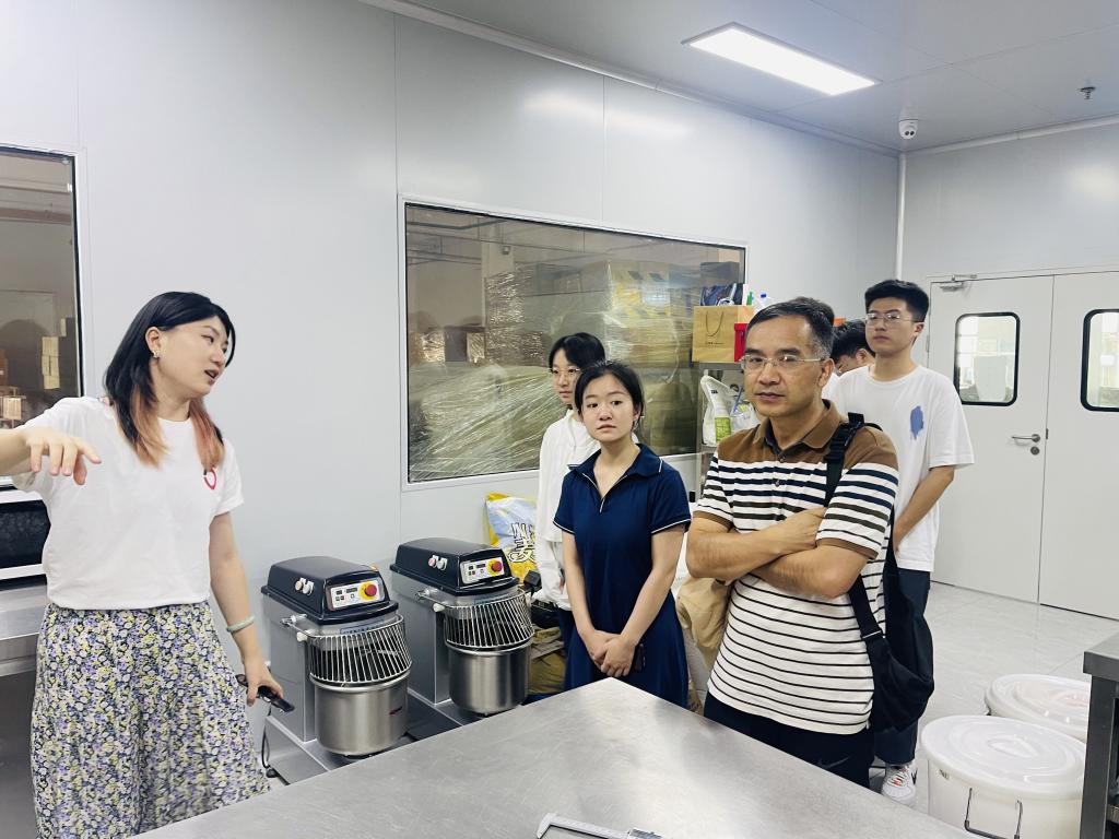 座谈会后,杨铁贵一行一一查看了实习场所条件是否安全,了解同学们的实习内容是否饱满,实习生活是否丰富多彩,在听了同学们的汇报和实习基地负责人的介绍后,杨铁贵对实习基地和指导老师的工作表示感谢,他认为实习单位与学院的深度合作是产科教融合的实践范例。他强调,同学们要将书本知识和实践实习相结合,学以致用、用以促学,在实习锻炼中要注重如何将自身能力的培养与企业的需求对接,做好准备迎接不断发展的食品行业中的新的挑战,安全至上,做好自我管理和自我约束,严守纪律。