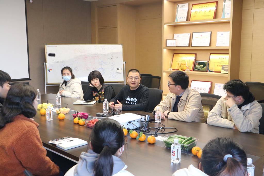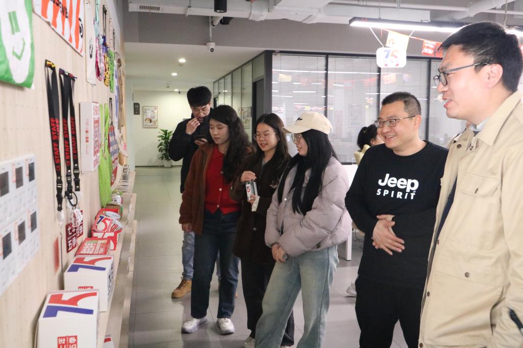 随后,陈俊总经理与师生们共聚会议室进行分享交谈。陈总结合自身工作及创业经历分享了自己的心得体会,希望同学们有计划地培养求职能力,积极自信地应对求职,不要盲目创业,多去尝试各种岗位,找到自己喜欢的行业。最后陈总和员工带领同学们参观了公司主要产品、文创周边及礼盒,介绍了公司主要产品及设计理念。