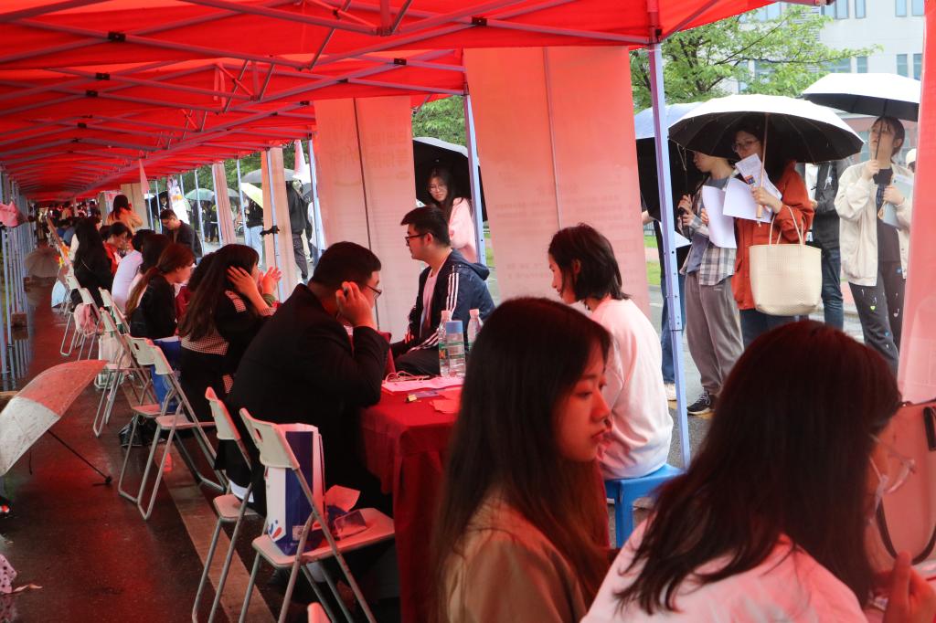 本次招聘会设打卡区、简历指导区、招聘区等区域,招聘会现场人头攒动,求职者络绎不绝。来自不同学校和专业的毕业生手持简历在招聘展位前穿梭,查看招聘海报信息并与用人单位积极交流工作内容、薪资待遇、发展空间等问题,企业工作人员对招聘岗位类型和待遇保障等向毕业生进行详细答疑。