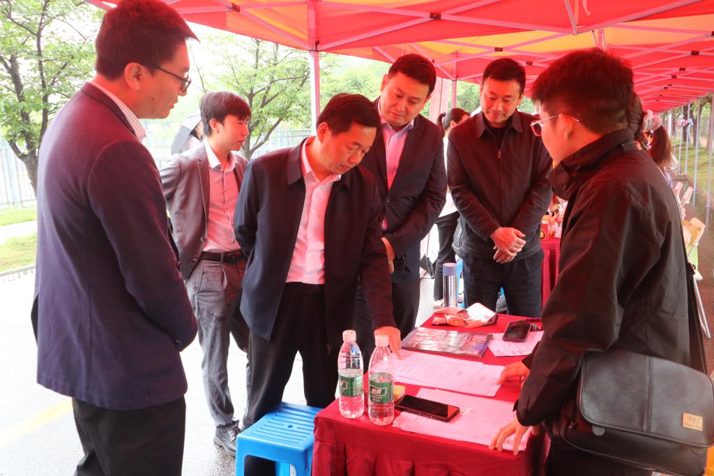 东西湖区人社局党组书记、局长姚树明及副局长叶志文等来到招聘会现场,英国365上市集团杨书记和吕书记等陪同,了解企业用人需求、招聘岗位的设置数量、毕业生的求职意愿和签约情况,鼓励毕业生理性规划职业生涯,积极了解求职企业投递简历。