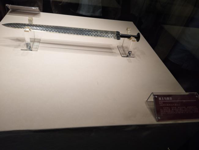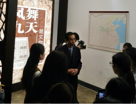 在“楚文化精品展”的展厅中,胡老先生从国家形象、社会统治、个人努力三个方面出发,分别介绍了“越王勾践剑”、“战国编钟”、“云梦睡虎地秦简”背后的故事,细腻地讲解仿佛将我们带回了那段尘封已久的历史。整个参观过程中,兴致勃勃得驻足于一件件展品前,专注地聆听着胡老先生的讲解。其中令大家印象最为深刻的是越王勾践剑,其剑身有鸟虫书错金铭文:“越王勾践,自作用剑”。越王勾践因其“卧薪尝胆”的典故,如今已经成为中华民族不惧怕失败与屈辱,敢于拼搏的楷模形象。胡老先生最后用一句诗总结道:“越王勾践破吴归,义士还家尽锦衣。宫女如花满春殿,至今唯有鹧鸪飞。”历练劫数,珍惜的历史越清晰,敞开的楼窗越能吞吐风云。
