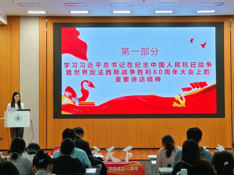 此次“弘扬伟大抗战精神,勇担民族复兴使命”主题党日活动的召开,不仅让支部成员深刻领悟了习近平总书记在纪念中国人民抗日战争暨世界反法西斯战争胜利80周年大会上的重要讲话精神,重温了伟大抗战精神,进一步坚定了铭记历史、珍爱和平、开创未来的信念,也深化了对党的作风建设重要性的认识。支部成员一致表示将以更加昂扬的姿态投身于新时代伟大实践,坚定不移听党话、跟党走,立足专业、服务社会,以青春之我、奋斗之我,在实现中华民族伟大复兴的征程上贡献智慧与力量。
