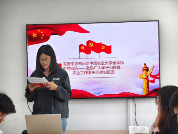 岳佩雨同志带领全体党员深入学习“习近平总书记给中国农业大学全体师生的回信”
