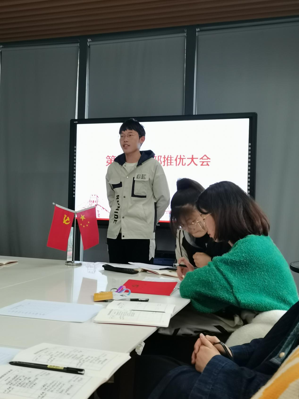 首先进行的是第四党支部发展对象推优大会,王柯源等十位入党积极分子分别从入党动机、对党的认识、个人简历等方面进行汇报。随后,培养联系人汇报了其主要情况和培养教育考察过程,并对其能否列为发展对象表明意见。接着,为进一步了解每位入党积极分子的理论素养和政治觉悟,由支部党员对其进行提问。正式党员投票后,在监票人的监督下进行唱票和计票,并将票数公布。