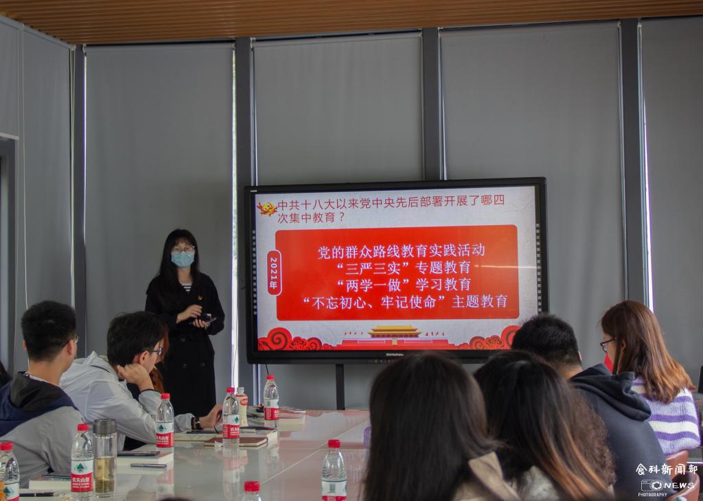 为在学生群体中扎实推进党史学习教育,引导学生党员全面深入学习党的百年奋斗历程与理论创新,3月27日中午,我院大学生党总支在食科楼阳光房举办首场“百年征程”党史读书分享会。校学生党建工作办公室主任毕娇娇到会指导,学院兼职辅导员、学生党建工作办公室主任李虎到场参加,八名本科生党员受邀为新一批发展对象分享学习经验和感悟,党建综合部工作人员喻茜主持分享会。