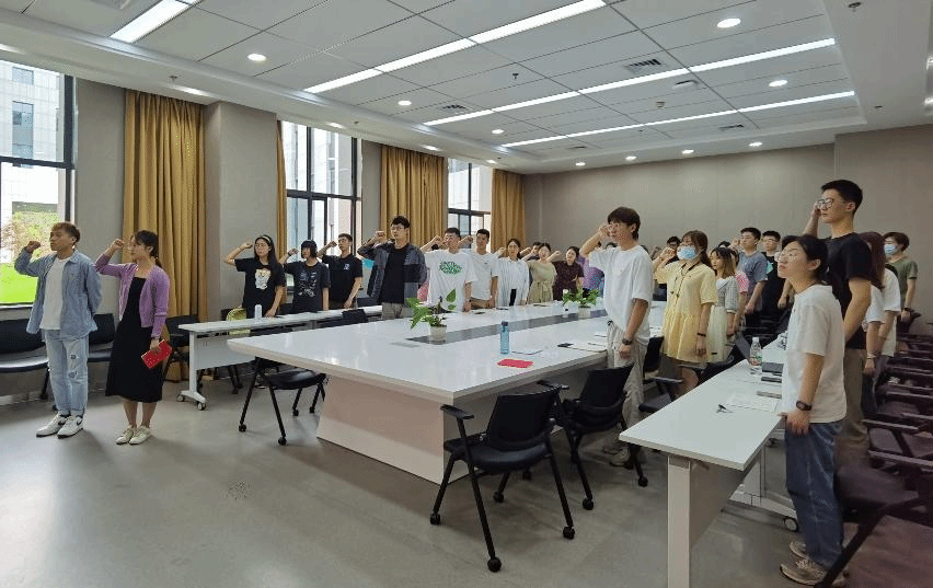 会议最后,支部书记丁一峰播放国际歌并带领全体党员重温入党誓词,强化党员同志的责任感与使命感,提醒党员同志牢记为师生服务的宗旨,坚定理想信念,奋发有为,要在日常学习生活和工作中立足本职争当先锋,始终作好模范带头作用。