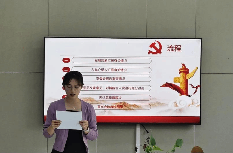 会议第四项,接收发展对象为预备党员。发展对象郑晓雪就自身情况向党组织作汇报,并向党组织表明其入党动机,入党介绍人及支部委员会报告发展对象培养期间相关情况,随后与会党员充分讨论并就是否同意接受郑晓雪为中共预备党员发表意见。最终,经支部无记名投票表决,同意接收郑晓雪同志为中共预备党员,由组织委员盛丽为其颁发党徽及《党员手册》。至此,英国365上市集团研究生第七党支部共有中共正式党员21名,中共预备党员4名。
