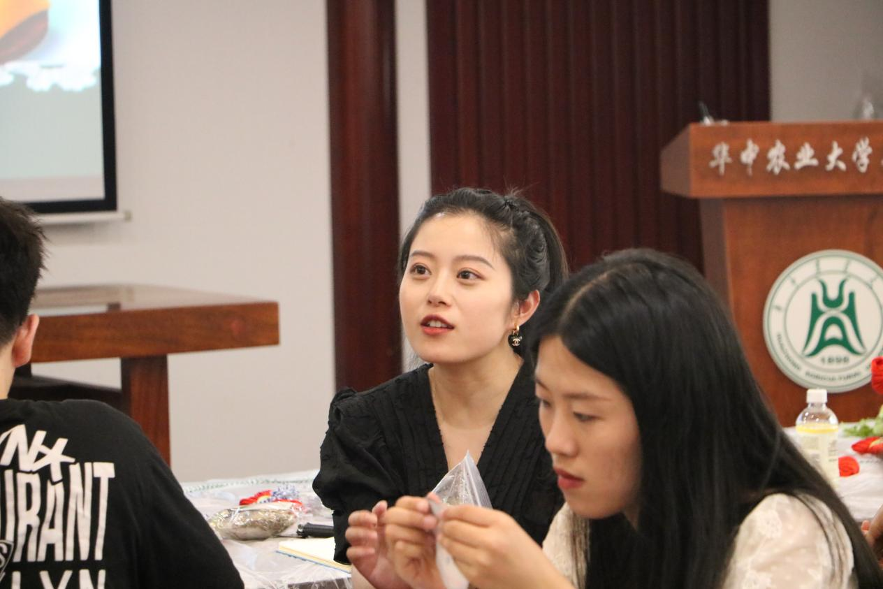 (图7 园艺林学学院党员分享制作完成的香囊)