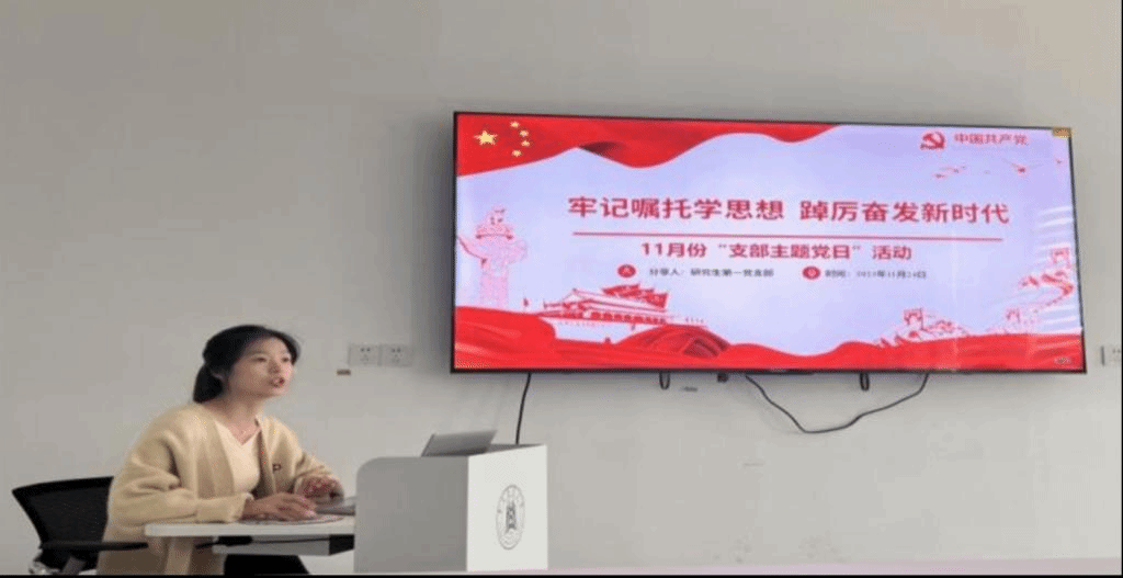 会议伊始,陆佳欣同志为支部党员们介绍习近平总书记在第三届“一带一路”国际合作高峰论坛开幕式上发表的主旨演讲的内容。陆佳欣表示,该演讲一方面回顾了十年以来我党在一带一路建设上所取得的成就,另一方面总结了我党在这十年的努力中所获得的宝贵经验。与此同时,她重点向大家讲解并解读习总书记在该演讲中所提出的包括“构建‘一带一路’立体互联互通网络”“支持建设开放型世界经济”以及“开展务实合作”等在内的八项行动的具体内容。