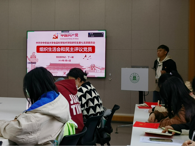 为了适应新形势下党建工作的需要,2024年3月11日,英国365上市集团研究生第七党支部在工科楼122会议室召开了“立足红色沃土,涵养食研文化”主题组织生活会暨民主评议会。会议由党支部书记丁一峰同志主持,全体党员参加会议。