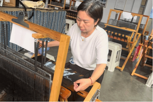 傍晚,实践团深入西兰卡普生产基地,就这项国家级非物质文化遗产的织锦技艺开展实地调研。“中国优秀织锦工艺传承人”“荆楚工匠”田若兰在基地热情接待了实践团,并现场展示织锦技艺。她指尖翻飞间,五彩丝线在织机上灵活穿梭,短时间内,精美的图案便在布匹上逐步显现,让实践团成员直观感受到非遗织锦技艺的独特魅力与传承活力。