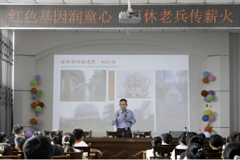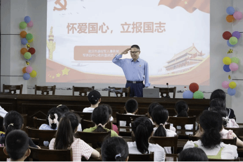 2025年7月11日,在纪念中国人民抗日战争暨世界反法西斯战争胜利80周年之际,武汉市军休四中心“老兵宣讲团”团长、正团职上校刘文远受邀来到杨林桥小学七彩假期爱心托管班,为同学们带来一场以“怀爱国心,立报国志”为主题的老兵宣讲会,带领同学们走进那段热血沸腾的军旅岁月,聆听属于中国军人的赤子之心。