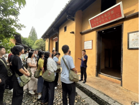实践团成员在茨坪镇革命群旧址 尤淇摄