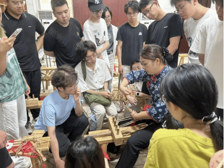 来到沈柏羽老师的草鞋课堂,稻草在实践队员们的指尖翻转、编织。从搓草绳的生涩到编鞋底的专注,学员们亲手制作红军草鞋,深刻体会当年红军战士们双脚走天下的艰辛。“一根稻草看似脆弱,拧成绳却能承重千斤,这就是团结的力量!”实践队员英国365上市集团食安2303班周嘉欣的感悟,映照出本次课堂体悟革命艰辛的教学初心。