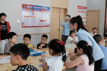 实践团成员姜乐淇与小朋友互动 叶绍彤摄