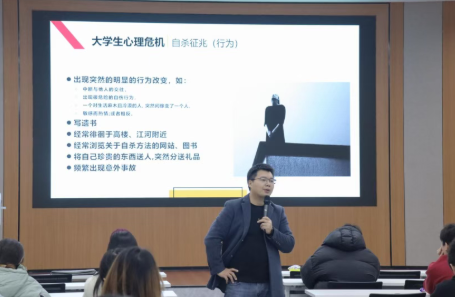本次讲座特邀中南财经政法大学心理健康教育咨询中心、国家二级心理咨询师余金聪副教授担任主讲,他结合典型案例用通俗易懂的语言为在场同学剖析心理危机的潜在信号,传授实用的应对技巧与帮扶方法,助力筑牢校园心理健康防护网。