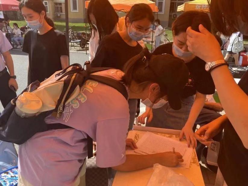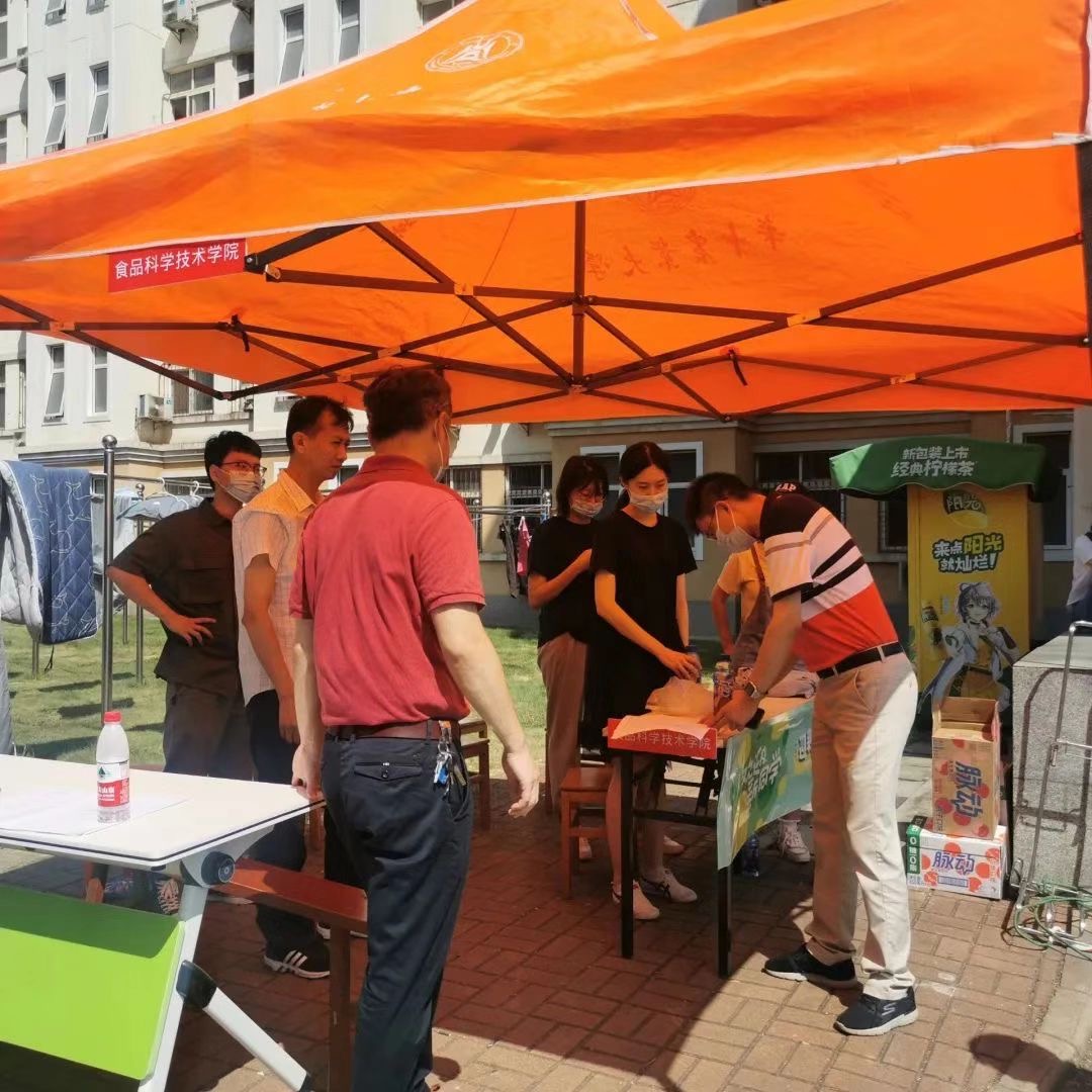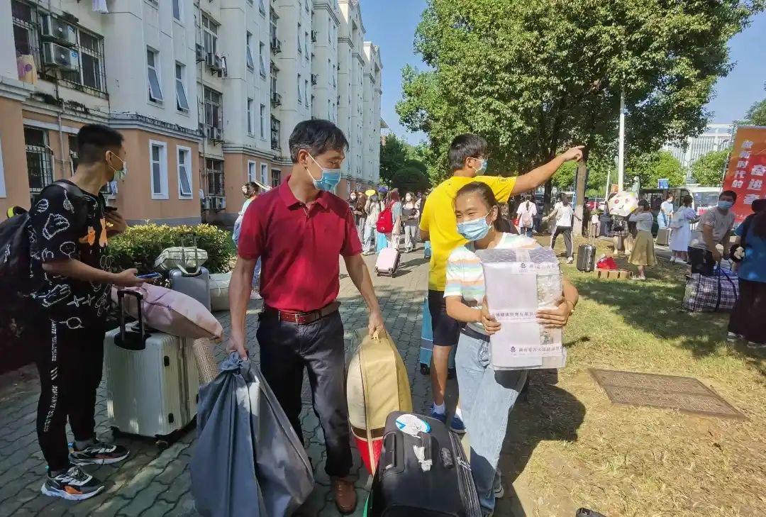 早上,新生从学校西大门进入,依次进行核酸检测,随后乘坐摆渡车来到狮子山大道迎新点。我院志愿者在此手举食科院迎新牌,带领新生前往宿舍,并帮助其搬运行李。来到宿舍楼,我院迎新帐篷下是早早等待在此的值班学生和老师,为新生发放宿舍钥匙,解答新生疑惑。