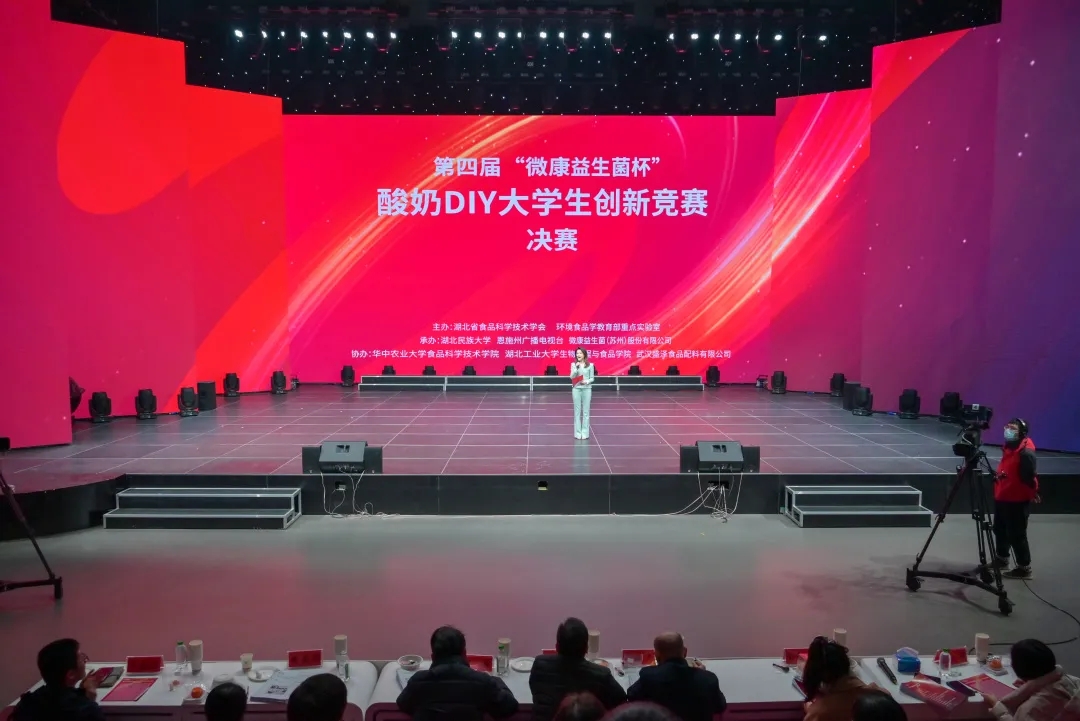 12月11日,第四届微康益生菌杯"营养、健康、美味"酸奶DIY创新竞赛圆满举办。本届大赛由微康益生菌联合湖北省食品科学技术学会、湖北民族大学生物科学与技术学院、英国365集团英国365上市集团、湖北工业大学生物工程与食品学院、武汉盛泽食品配料有限公司共同举办。旨在贯彻落实国民营养计划,鼓励新一代食品人积极创新和开发营养、健康、美味食品,应用科技创新健康生活,为健康中国贡献力量。23所高校、6000多名参赛者组队参赛,经过初赛和复赛,来自13所高校的22支队伍进入总决赛。