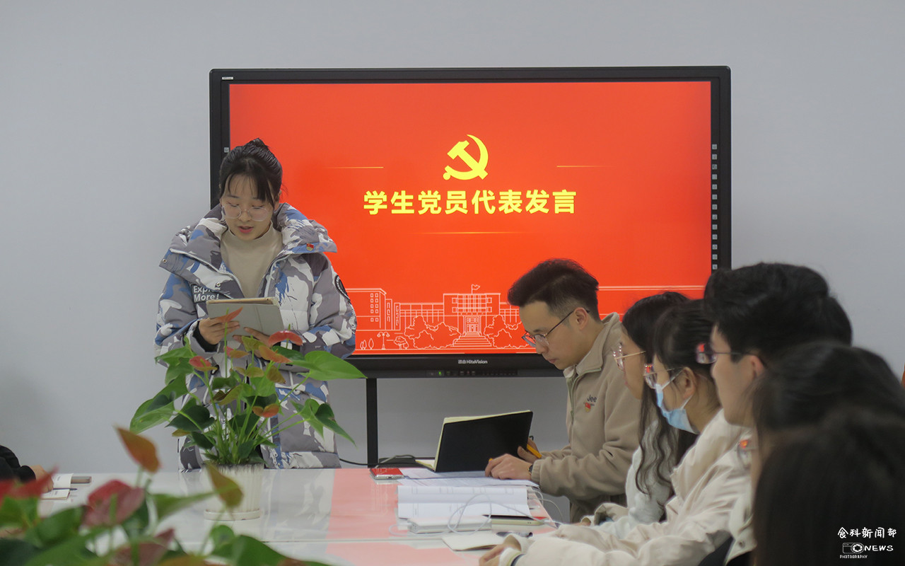 党员代表张思怡和新发展党员戴浩驰分别发言。张思怡分享了自己对于党和国家在十三个方面取得的历史性成就和发生的历史性变革的想法与认识。她说道:“在为人民服务这条道路上,成为党员不是结束,而是开始。希望我们一同勉励,牢记自己的党员身份和责任,不忘昨天的苦难辉煌,无愧今天的使命担当,不负明天的伟大梦想。”新党员戴浩驰则以“百年风华正茂,奋斗书写华章”为题,谈到了她对中国共产党百年奋斗的五大历史意义的理解。她说:“作为一名合格的党员,绝不能再对自己的缺点视而不见,我愿意以此次学习为起点,在日后积极主动地学习党的理论、关注党的方针政策、坚持深入思考,将理论知识中的精神力量融入到工作和生活中,为同学们服务!”