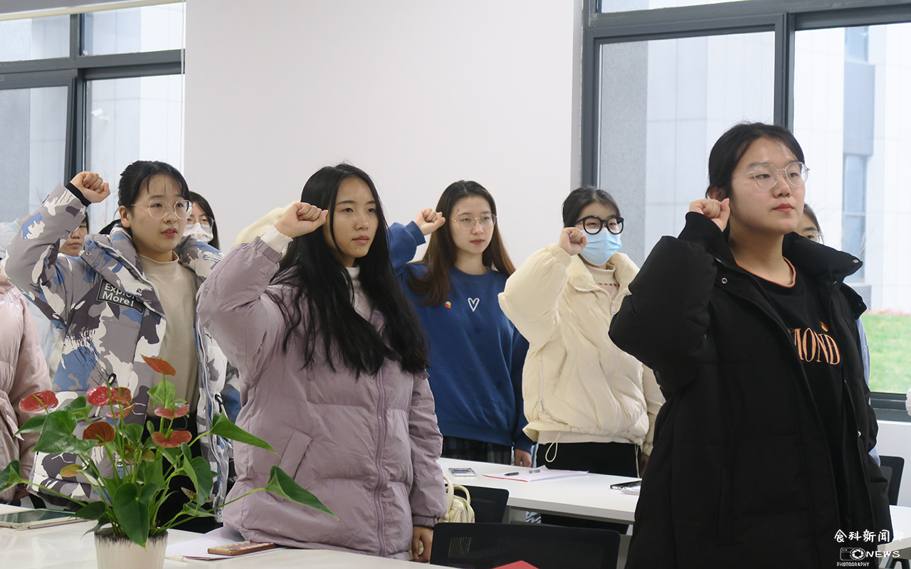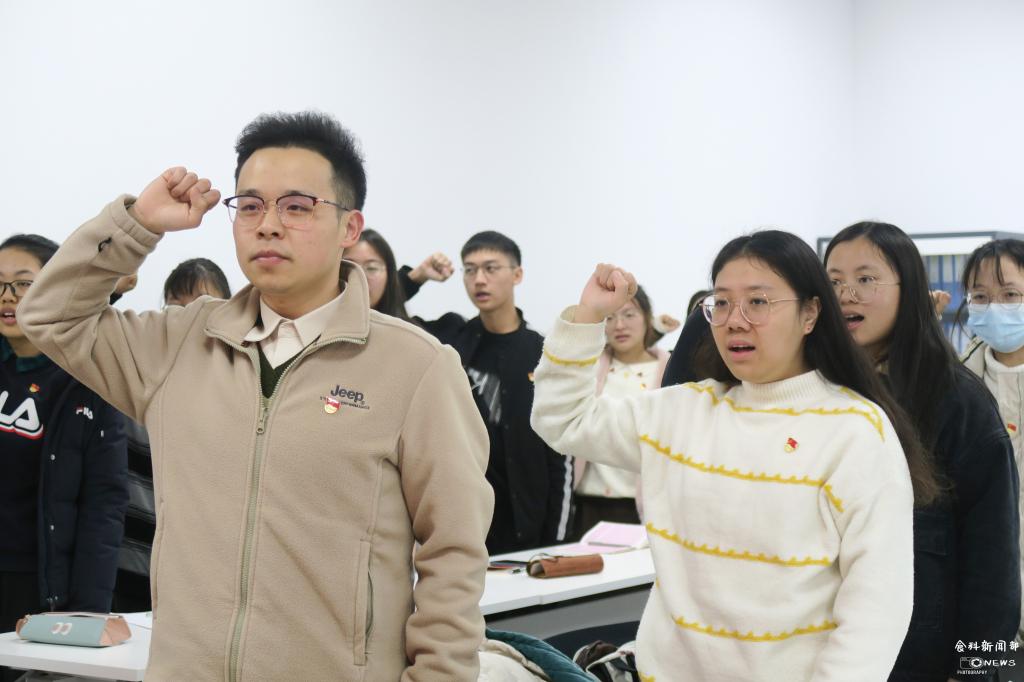 为进一步推动十九届六中全会精神学习走深走实,加强学生党员的理想信念教育,12月16日中午,我院新发展党员入党宣誓仪式暨专题学习贯彻第十九届六中全会精神会议于工科大楼120会议室召开。本次会议由辅导员李虎主持,党委副书记向异之及本学期新发展的33名预备党员到场参会。