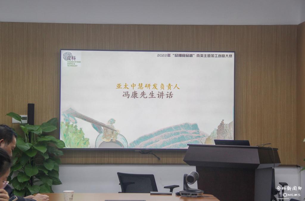 随后,冯康在线上与同学们进行交流。他首先介绍了亚太集团的基本情况,并从消费者与开发者两个角度分析了食品存在于市场的条件。他说道,消费者易被产品的外观所吸引从而产生购买欲,但一款产品长期存在于市场的条件是其本身风味。所以他强调,同学们作为开发者更应侧重于产品的口味,多方面兼顾,做到“色香味俱全”。