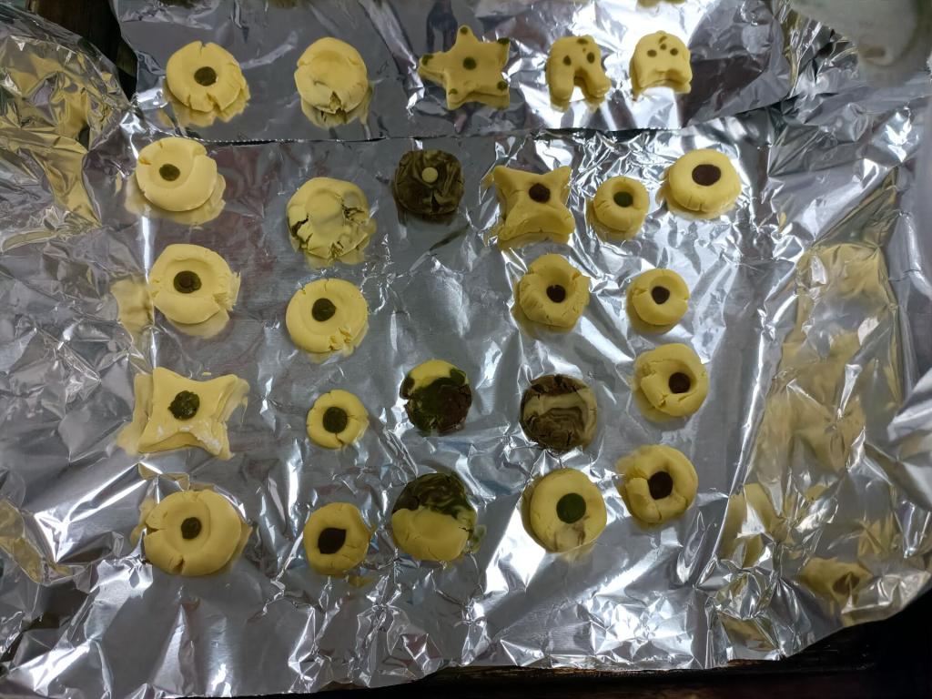 活动正式开始之前,志愿者帮助小朋友们穿好实验服,并带领他们开展准备工作。随后,志愿者对小朋友们进行分组,每组小朋友都有志愿者讲解制作方法并指导操作。在简单介绍之后,小朋友们便开始自己动手做饼干。从融化黄油、过筛面粉、添加盐糖到搅拌均匀、揉成面团,小朋友们的操作虽然生疏,但是态度认真,彼此分工明确。在大家的互相配合之下,很快,许多面团在一只只小手下成形。捏造形状时,小朋友们发挥想象,制作了许多造型独特的饼干。成品烘烤出炉后,小朋友们互相交换饼干,留作纪念。