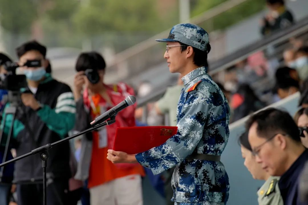 2021级本科生军训结业式在嘹亮的《中国人民解放军军歌》中结束。