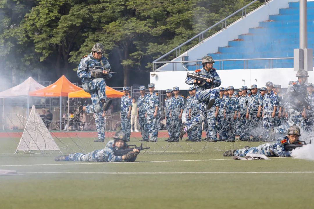 23名男生组成的战术分队,模拟战场上协力“解救人质”。他们卧倒“防空袭”、穿越“封锁线”,蛇形前进、抬枪瞄准……动作行云流水,战士们成功破除“危机”。