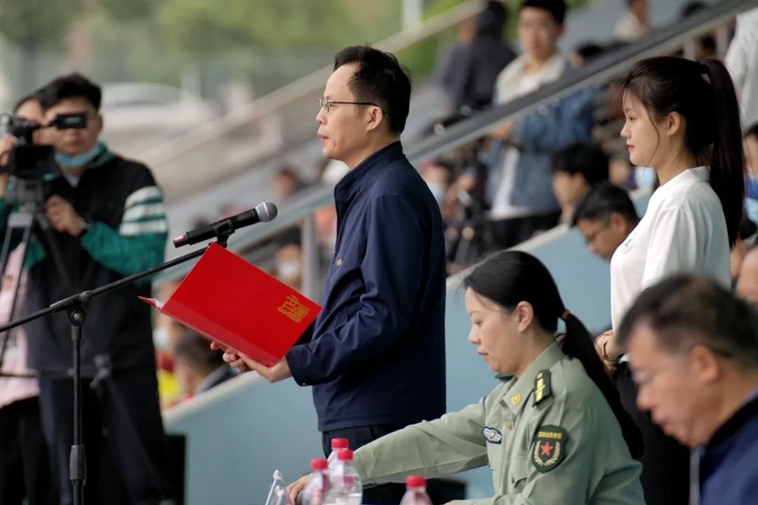 5月14日上午,学校2021级本科生军训结业式在东运动场举行。校党委书记高翅,校长李召虎等校领导,承训单位、武昌职业学院党委书记王大耀以及军训工作领导小组成员、校属有关单位负责人、全体承训教官,各学院领导班子成员、2021级班主任、辅导员、教学秘书参加结业式。结业式在庄严的升旗仪式中拉开序幕。