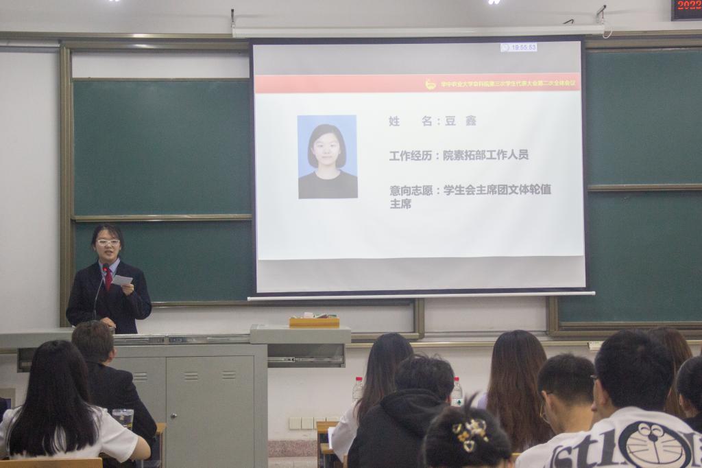 5月22日上午,我院第三次学生代表大会第二次全体会议在综合楼501召开。我院党委副书记向异之,辅导员李子鑫、许宝丹、李虎、李善达及学生代表和各候选人到场参会。会议由学生会轮值主席米若瑜主持。