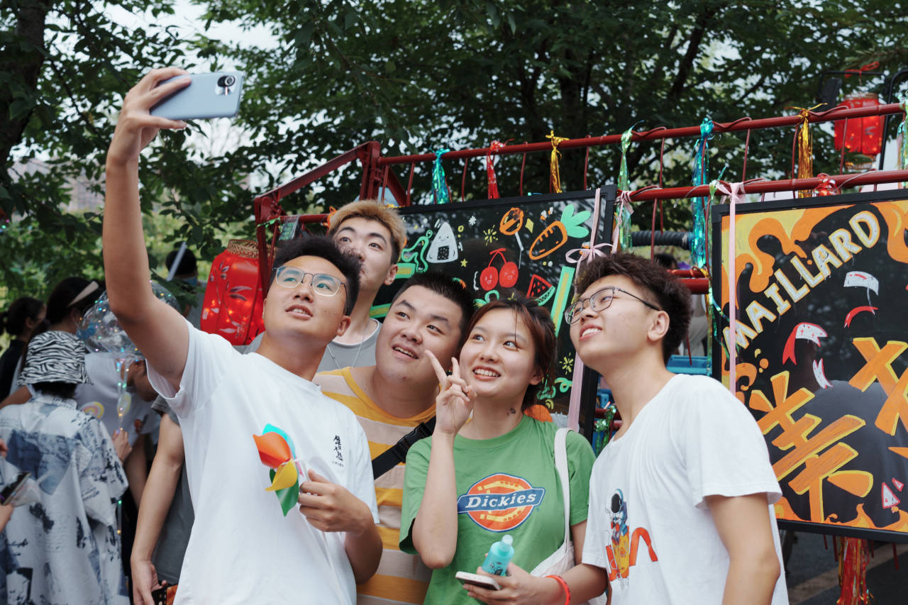 巡游途中,老师学生们眉笑颜开,亲密交流,他们挥舞着手中的气球,愉快地同身边的人拍照留念。一路巡游,一路欢笑,虽然天气阴霾,但大家火热的心和美丽的笑容点亮了天空。