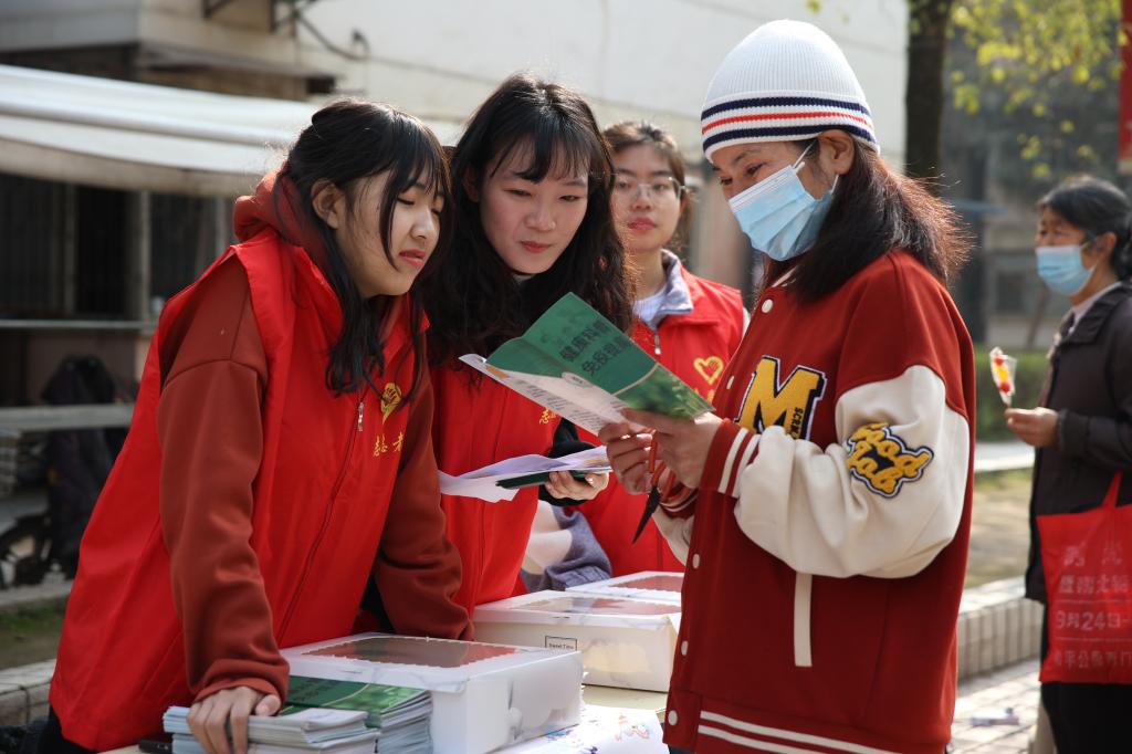 在科普区,志愿者给居民分发列有提高免疫力方法的宣传手册,借助宣传手册为他们进行知识科普。在答题区,居民则根据所了解的知识进行答题,完成之后每人将获得一份由志愿者亲手做的纸杯蛋糕作为小奖励。