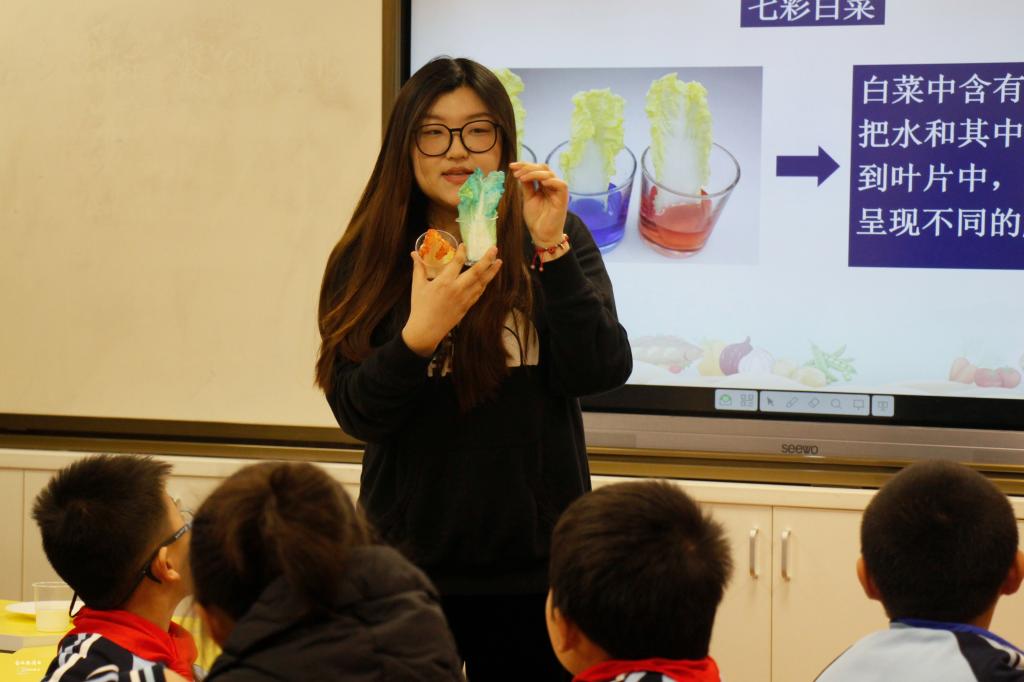 3月22日下午,我院耕读学堂系列活动之一——“食物色素的奥秘”走进华农附小,讲师刘钰洁用生动形象的语言和丰富有趣的实验,给四一班的小朋友们带来了一场别开生面的色素知识科普大课堂。
