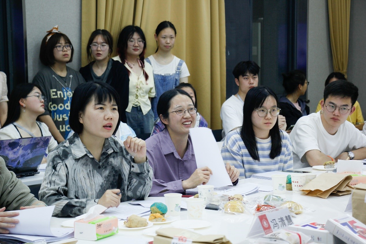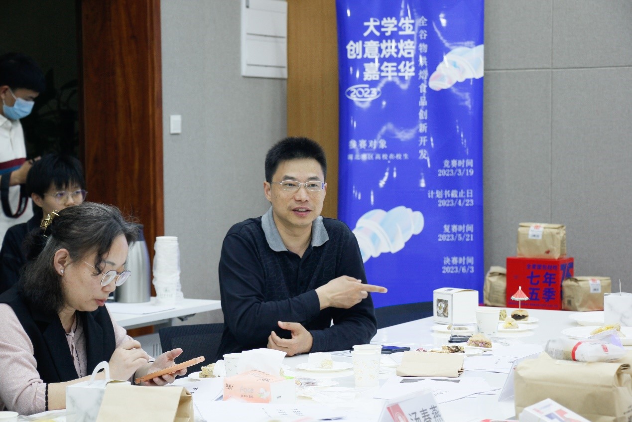 交流会环节中,七年五季研发团队与各队伍进行交流,大家就原料选择、创新点、工艺改良及制作中出现的问题等进行现场沟通。例如,针对“黄米全麦夹心欧包”产品如何延缓面筋失水老化,保持口感的问题,七年五季研发人员表示可以通过加淀粉酶、蛋白酶或选择中种发酵的方法来解决。交流过程中,大家畅所欲言,气氛和谐,向异之书记发言表示,希望大家持续思考,保持创新的劲头,学院也会大力支持同学们的创意与想法。