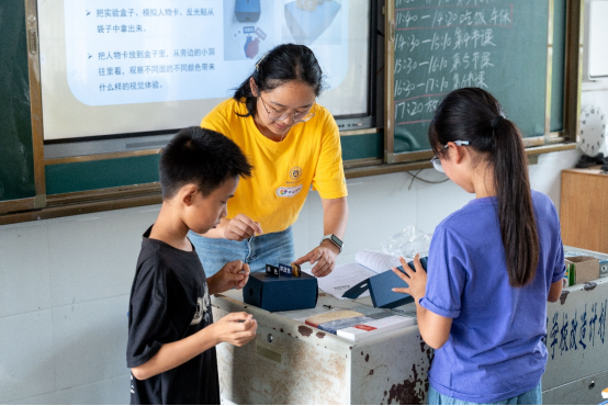设计了涵盖思想引领、身心成长、食安启蒙等八大模块的“成长菜单”,并配套开发10余套课件、测评问卷等标准化物料。从带领孩子体验简易VR眼镜、玩转“健康饮食对对碰”游戏,到组织趣味运动会、开设科普小讲堂——她与孩子们共同创造笑声与回忆,也在他们眼中看见了远方。鲁迅先生那句“无穷的远方,无数的人们,都与我有关”,成为她扎根乡村教育最真实的注脚。“我们带来的不仅是知识,更是一份被看见、被陪伴的温暖。”孩子清澈眼眸中的好奇与依赖,让她深刻体会到,志愿服务输送的不仅是知识,更是陪伴的温暖、被关注的自信和看向更大世界的勇气。这段经历让她确信,每一份真诚的陪伴,都可能成为改变一颗心灵轨迹的初始力量。