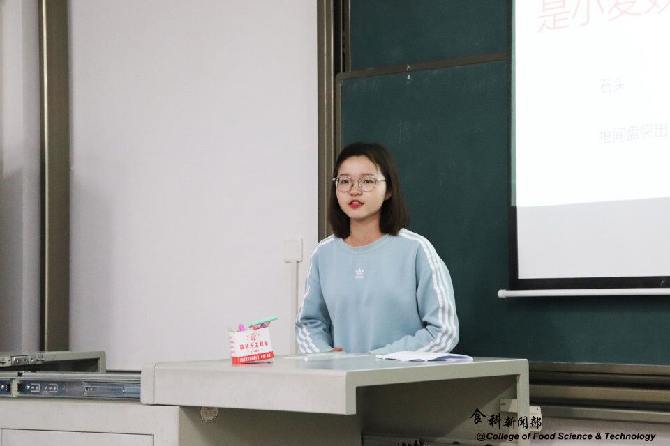 珠宝爱好者食工1604班的赵谊杨带来了不一样的阅读体验,她向我们分享的是《世界珠宝宝石名录》。她谈到,与此书的结缘源于斯里兰卡的一次游历,回国后就立即买了英文版书籍,边翻译边阅读,还现场展示了她的翻译文档截图以及手写翻译文稿。她说,这本书不仅教会了她宝石的性质也使她积累了丰富的英语知识。同时,她讲到分享这本书并不是希望大家从此爱上珠宝,而是借此机会告诉大家阅读不能与实践脱节,真正的好书包括科普类书籍应该得到更多的关注,兴趣需要我们去灌溉,不要让“忙”成为借口。期间,她也带来了一些宝石,并赠予现场观众。食工1703班的熊京评价到,她的演讲风趣活泼,令人印象深刻。